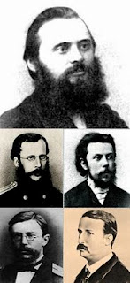 Тhe Russian 5 (known only in the west as The Five) or the “Mighty Handful” (Могучая кучка ) refers to a circle of five composers in the mid to late nineteenth century who met in St. Petersburg and shared their ideas with the aim of producing specifically Russian nationalist music that did not merely imitate older European music. The circle was led by Mily Balakirev who rallied a team of amateur composers including the famous names of Cesar Cui, Modest Mussorgsky, Nikolai Rimsky-Korsakov, and Alexander Borodin. All five of the members were young men who had grown up with a relatively simple upbringing, thus they considered themselves to be authentically Russian and closer to their native soil than the westernized academy. Although they had been preceded by Mikhail Glinka and Alexander Dargomyzhsky who had both been stark Russian Nationalist composers (each writing their share of successful operas about Russian themes), The Five were the first concentrated effort in this artistic movement.